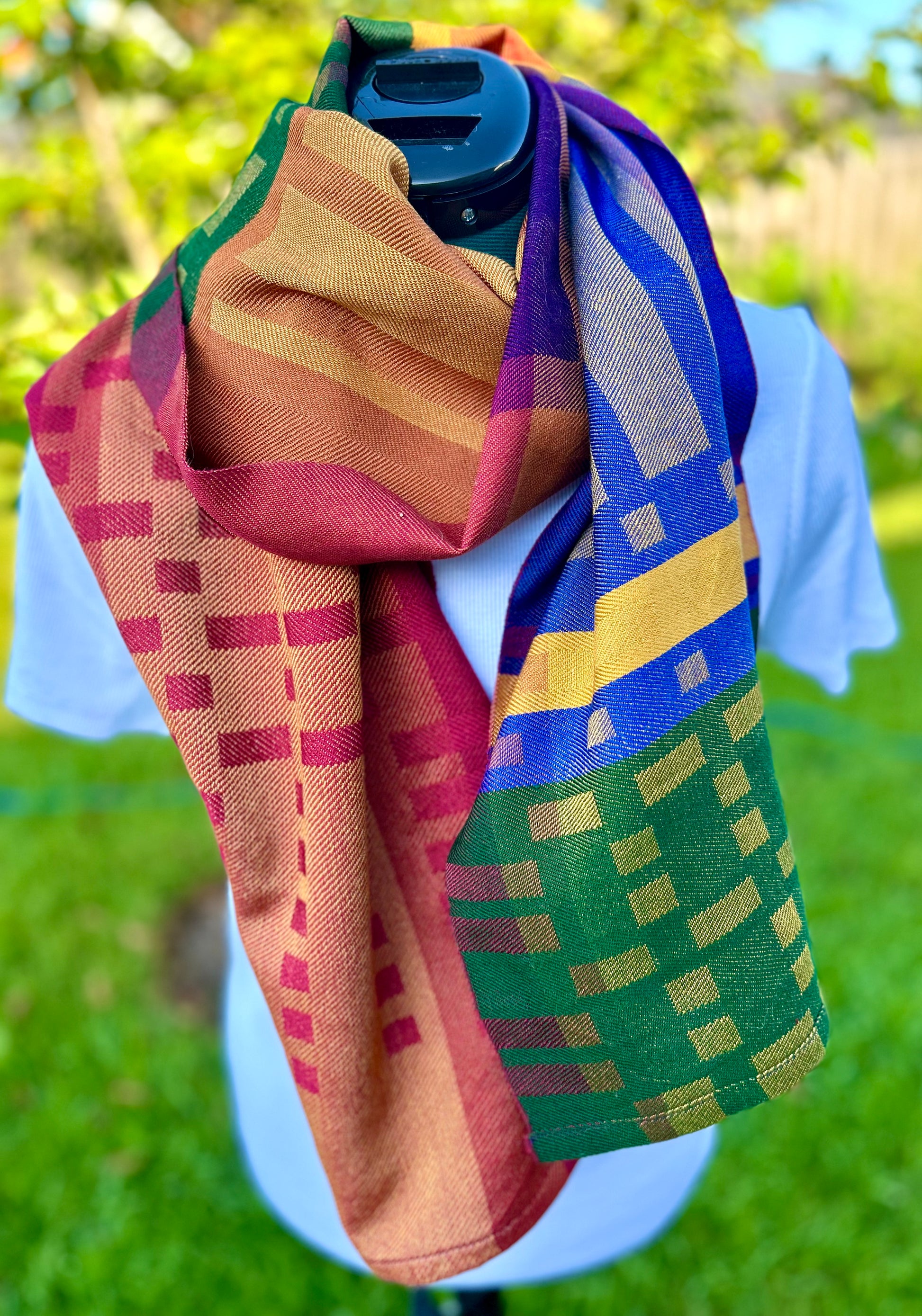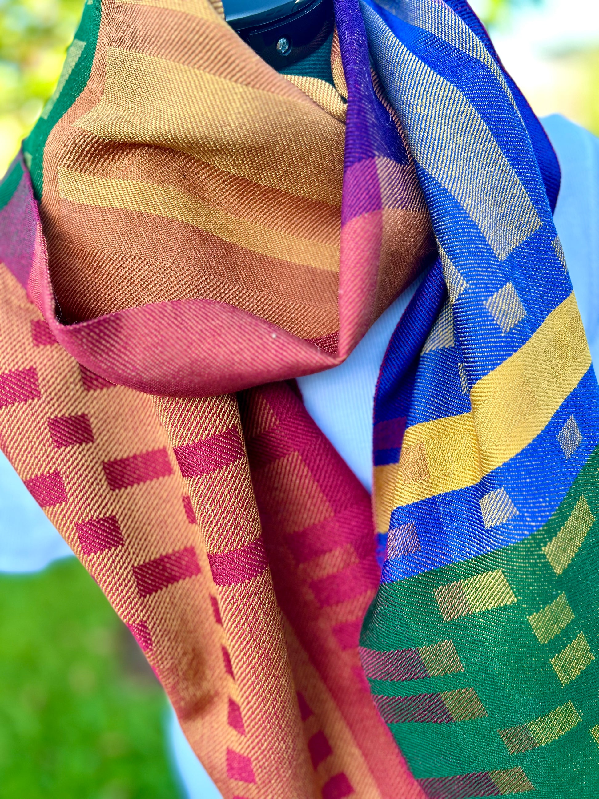 Indulge in the vibrant colors and soft texture of our handwoven cotton scarf. Designed for lightweight comfort, this long scarf is perfect for adding a pop of color to any outfit. Elevate your style while supporting local artists with this colorful accessory!