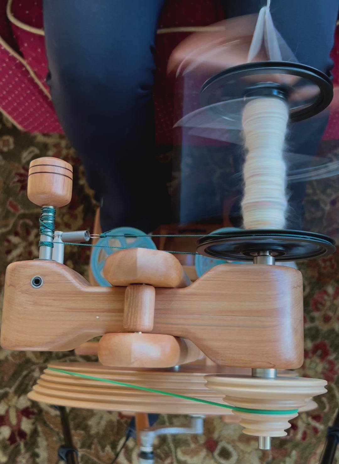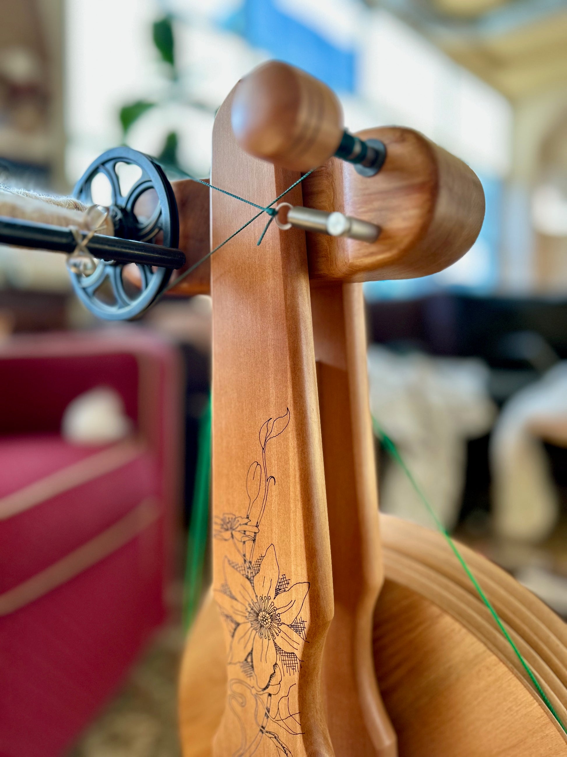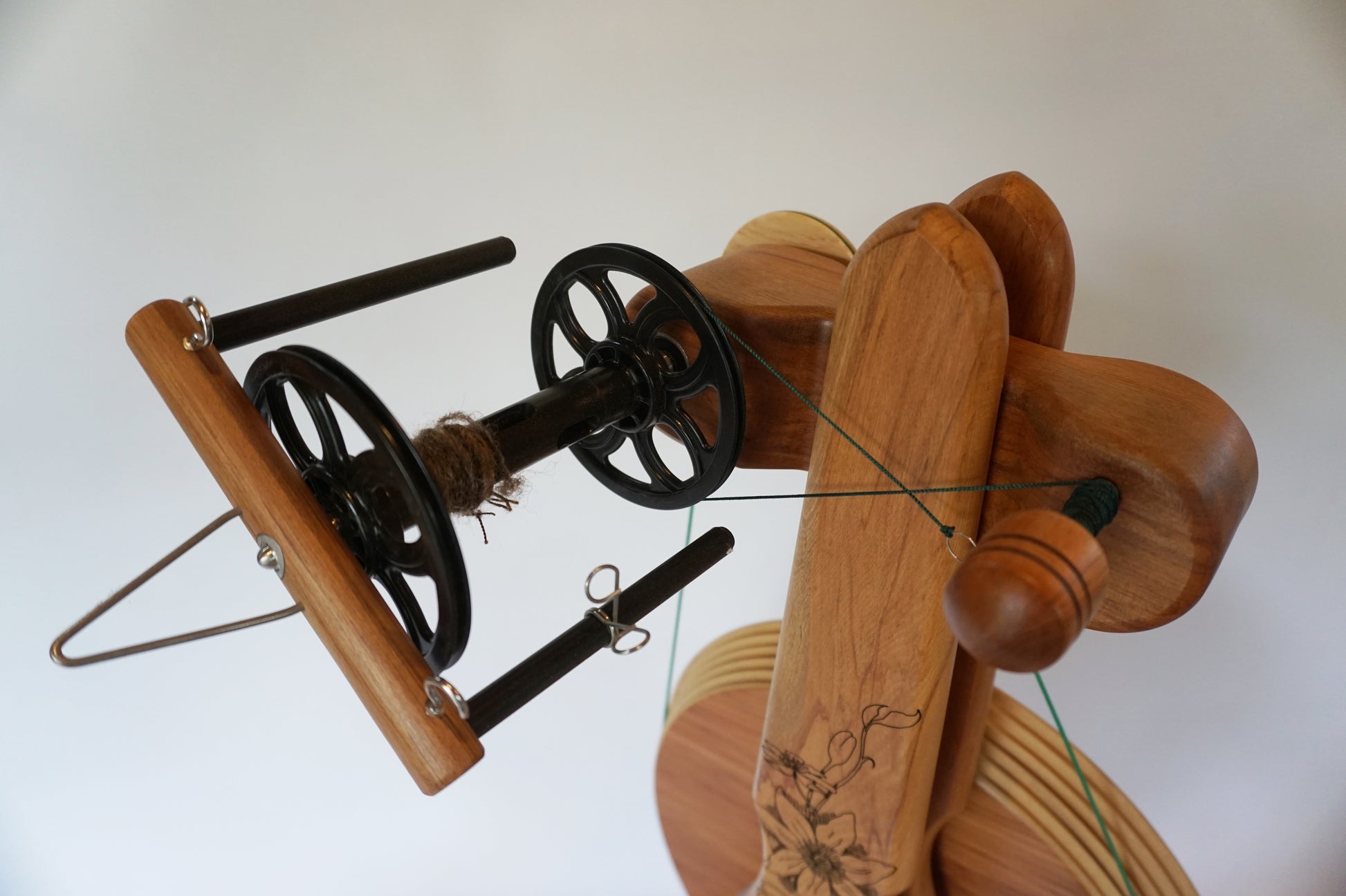 We endeavor to create specialist accessories that are compatible with our full range of wheels. This means that as your spinning practice expands beyond the basics, your wheel will grow with you and can be optimized for whatever kind of spinning you are planning to do, as well as the kind of spinning you had not planned to do! Whatever you need, we have you covered; faster pulleys and lace flyers right through to massive capacity bobbins and the Aura technology modified double drive.