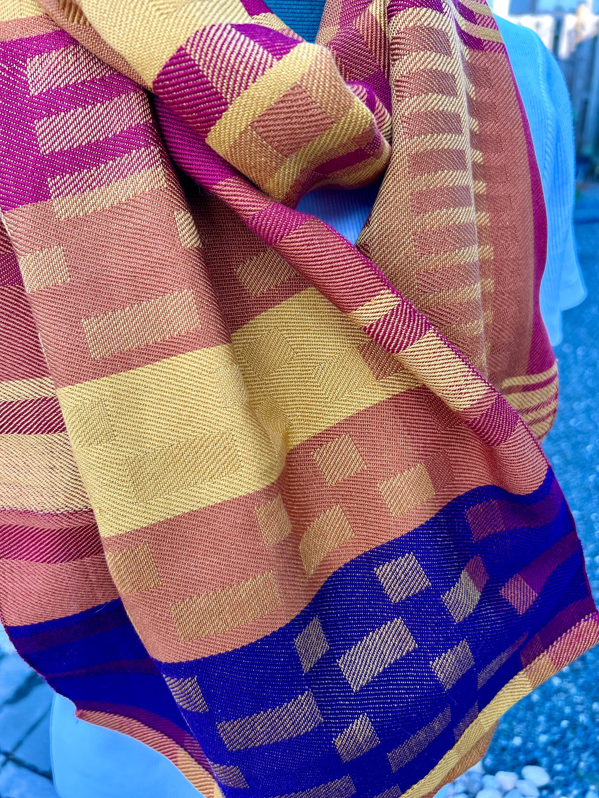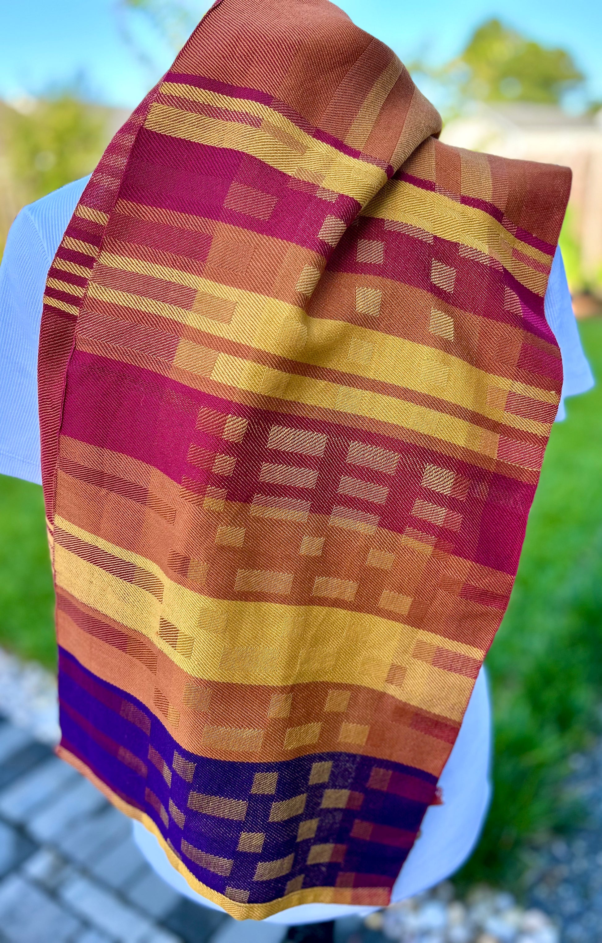 Wrap yourself in vibrant colors with this cotton scarf. Made of lightweight, mercerized cotton, this scarf is perfect for adding a pop of color to any outfit. Add a playful touch to your wardrobe with this quirky and colorful accessory. This can also be a table runner!